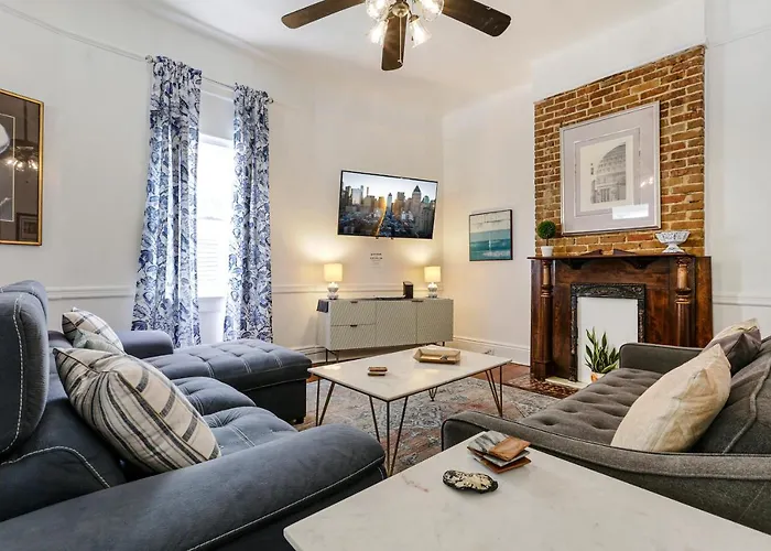 Die 3-Zimmer- Uptown Spacious 4Bd/3Ba With Historic Charm besteht aus einem Patio und einer Sitzecke, hat einen Blick auf die Stadt und ist mit einem Fernsehen mit mehreren Kanälen ausgestattet. Zu den Annehmlichkeiten in den Zimmern gehören auch ein Bügeleisen/Bügelbrett und eine Klimaanlage sowie ein Schreibtisch für einen angenehmen Aufenthalt. Diese Unterkunft verfügt über ein Badezimmer mit einer getrennten Toilette, einer Badewanne und einer Dusche. Ein Haartrockner und Badelaken stehen auch zu Ihrer Verfügung.